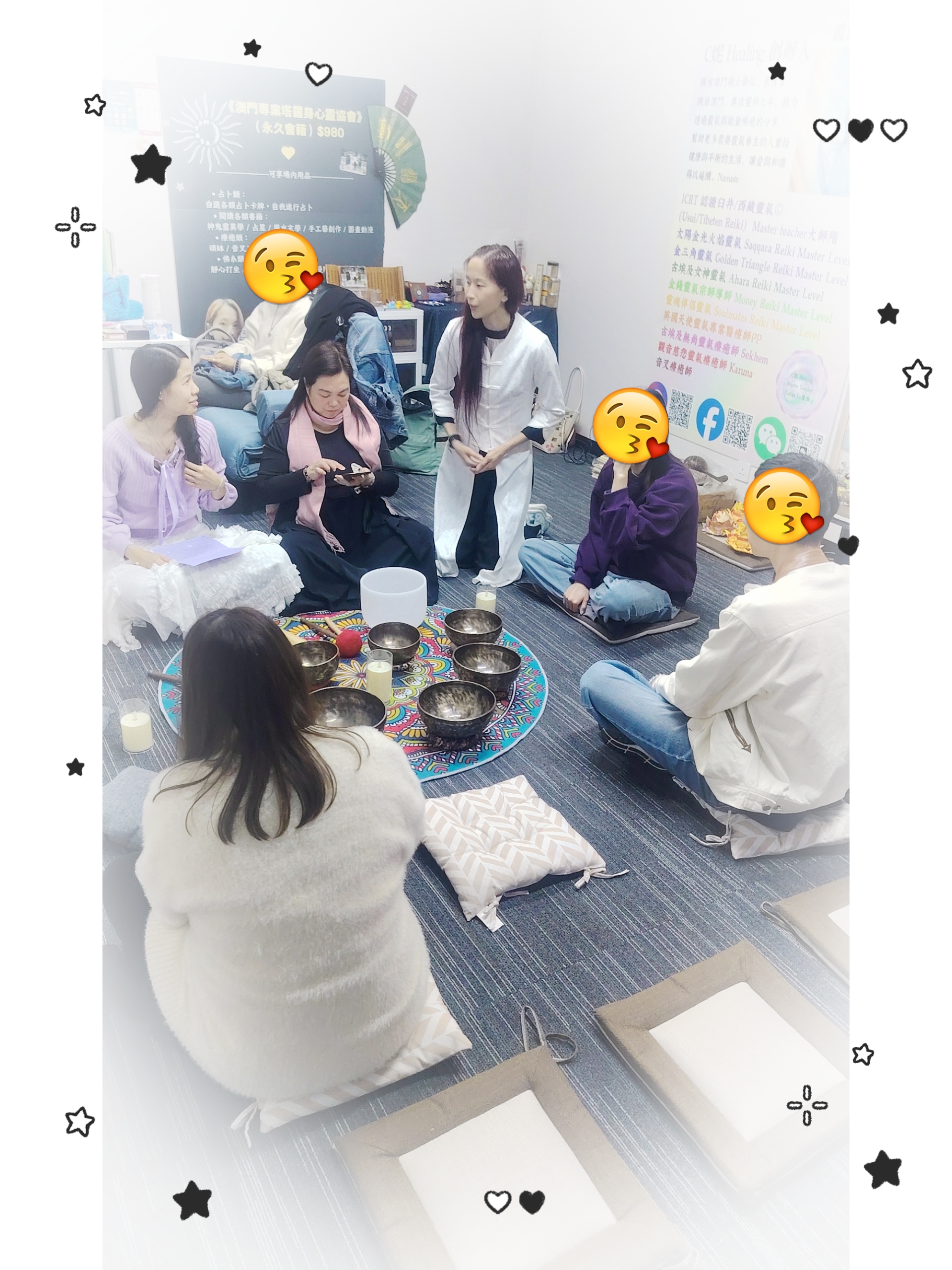 澳門專業塔羅身心靈協會會長Kate 同C妮Healing 茵茵的相知相遇 今日同大家一齊進行的紫火冥想,真係好有意義~在會長 Kate 的帶領下,伴隨著頌缽的聲音,我哋透過紫色火焰去淨化